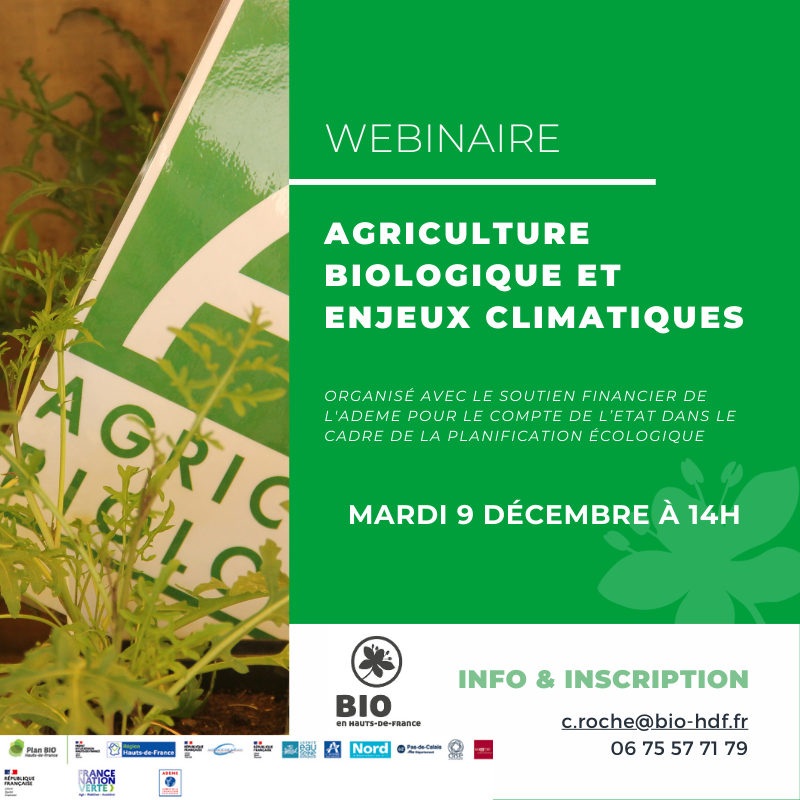 Au programme de ce rendez-vous : effet de serre et changement climatique, évolution du climat dans la région Hauts-de-France, impact de la bio sur le climat, retour sur les diagnostics carbone réalisés dans les fermes bio